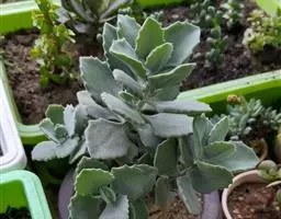 褐斑伽蓝是景天科、伽蓝菜属多年生肉质草本植物或小灌木。全株灰白色,密布白色茸毛。叶片长卵形,…