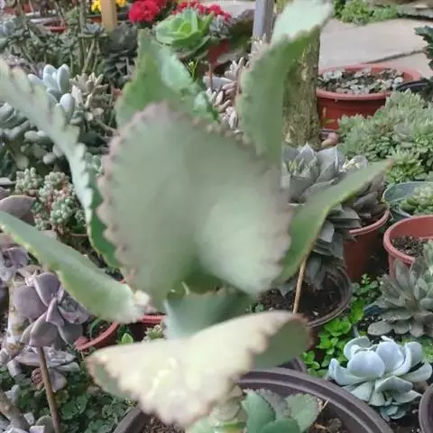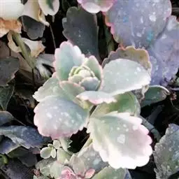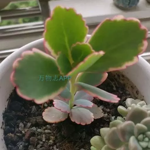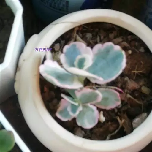 江户紫,景天科伽蓝菜属草本植物,是多年生草本花卉。花白色,但栽培中很少能见到花,常作观叶植物栽培。…