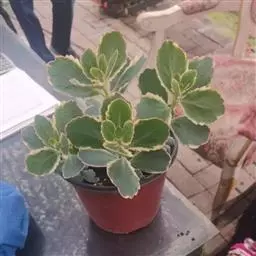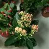 多年生肉质草本植物,株高20~30厘米,分枝较密,叶交互对生,肉质叶扁平,卵形至长圆 玉吊钟 形,长2.5~4厘米,宽2~3厘米,边缘有齿,叶蓝绿或灰绿色,上面有不规则的乳白、粉红、黄色斑块,极富变化,新叶更是绚丽多姿、五彩斑斓,是多肉植物中的观叶佳品,非常美丽.松散的聚伞花序,小花红或橙红色。