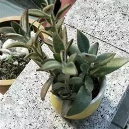 玉吊钟 (Kalanchoe fedtschenkoi 'Rosy Dawn' ),景天科、伽蓝菜属的多肉植物、也称多浆植物,别名洋吊钟。该物种喜温暖凉爽的气候环境,不耐高温烈日,它叶色艳丽,形态如花,株型美观,根须奇特,具有极高的艺术欣赏价值。原产马达加斯加岛干燥、阳光充足的热带地区。