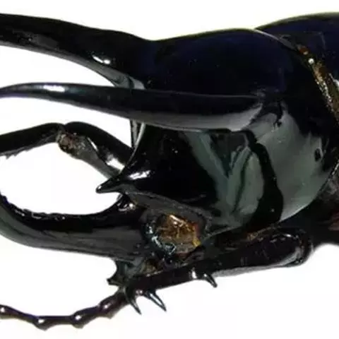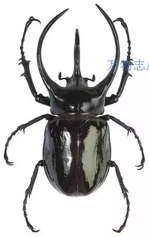 南洋大兜虫,学名:Chalcosoma caucasus这是一只生在马来西重热带林中的器性洋大虫,它是体形最大的昆虫之一,可达惊人的12厘米,它长着三个长而锋利的触角一一其中两个长在躯干上,一个在头部,南洋大兜虫在与雄性对手争斗时使用这些触角,它们试图用触角抱紧对手的身体,然后用力将其抛开,胜利者将得与雌性个体文配的机会。雌性个体没有触角,且体形更小 。