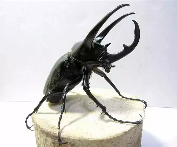 南洋大兜虫也称为阿特拉斯大兜虫,指的是节肢动物们,真节肢动物亚门,昆虫纲,有翅亚纲,鞘翅目,多食亚目,金龟科,犀金龟科的一种昆虫。以希腊神话中的持天巨人阿特拉斯命名,是大型甲虫之一。属于夜行性甲虫,具有很强的趋光性,通过卵生方式繁殖,成虫平均身长:雄性50~140mm,母虫40-70mm,广泛分布于整个东南亚地区。因有三个角又被习惯叫做三叉戟犀金龟。
