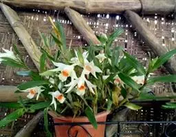 球花石斛,是兰科石斛属的多年生附生草本。茎直立或斜立,圆柱形,粗壮,基部收狭为细圆柱形,不分枝,…