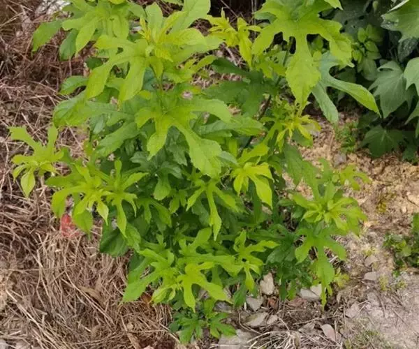 叶宽卵形,叶缘具多个不规则缺刻状深裂。