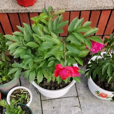 进行盆栽时,栽植季节以9~10月为最好。盆栽牡丹应选择适应性强、早开花、花型较好的洛阳红、胡红、赵粉等品种。植株宜选用芍药作砧木嫁接的3~4年小棵牡丹或具有3~5个枝干的分株苗。盆栽时,盆底可用粗砂或小石子铺3~5厘米厚,以利排水。盆土宜用黄砂土和饼肥的混合土,或用充分腐熟的厩肥、园土、粗砂以1:1:1的比例混匀的培养土。填土要使根系舒展,不能卷曲;覆土后要用手压实,使根系与泥土紧密接触,才易于成活。上盆后浇一次透水,放半阴处缓苗。转入正常管理后,可放置向阳处,保证其有充分的阳光照射。生长期间要经常松土,每隔半个月左右施一次