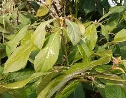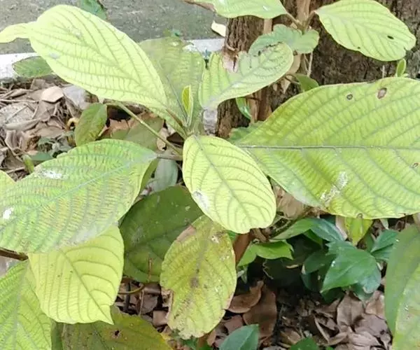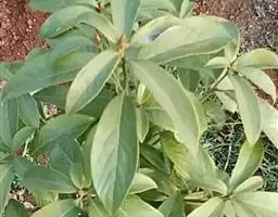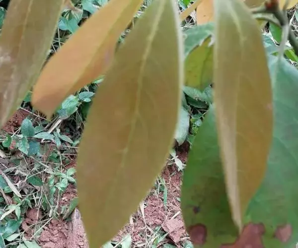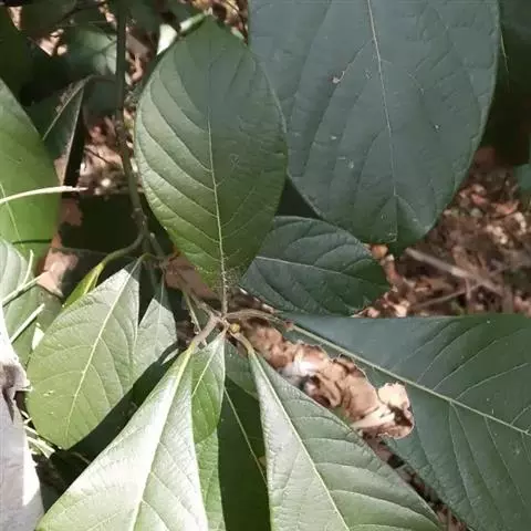 小枝、叶柄及花序密被黄褐色或灰黑色柔毛或绒毛。叶革质,倒卵形、椭圆状倒卵形或阔倒披针形,长8-27厘米,宽3.5-9厘米,通常长12-18厘米,宽4-7厘米,先端突渐尖或突尾状渐尖,基部渐狭,上面完全无毛或沿脉上有毛,下面密被黄褐色长柔毛,少为短柔毛,中脉和侧脉上面下陷,侧脉每边8-13 条,弧形,在边缘联结,横脉及小脉多而密集,结成明显网格状;叶柄长1-2.5厘米。