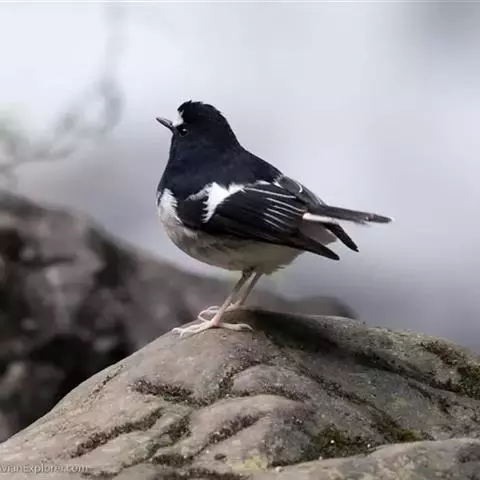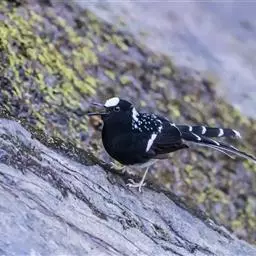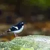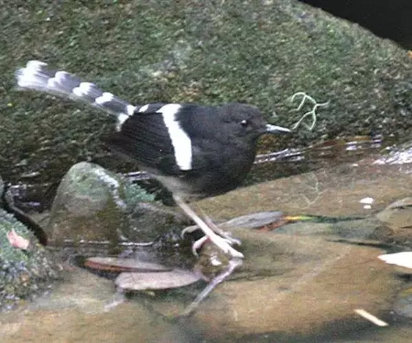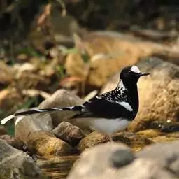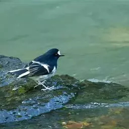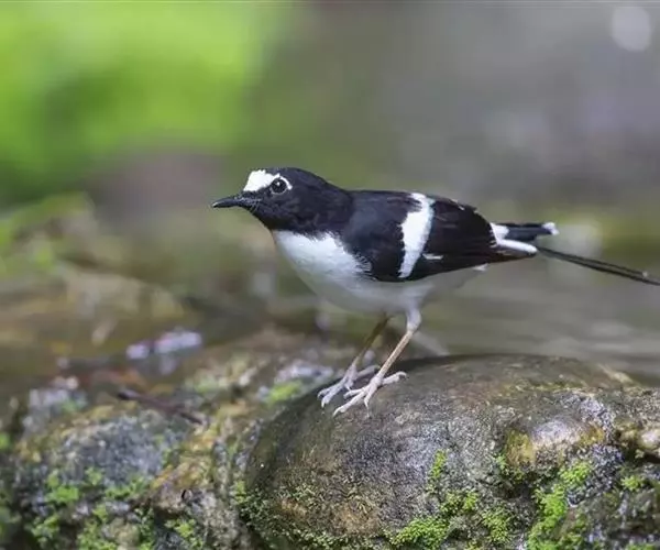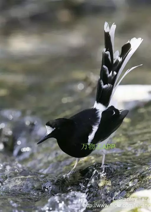 白额燕尾(学名:Enicurus leschenaulti)属中型鸟类,体长25-27厘米。尾长、呈深叉状。通体黑白相杂。额和头顶前部白色,其余头、颈、背、颏、喉黑色。腰和腹白色,两翅黑褐色具白色翅斑。尾黑色具白色端斑,由于尾羽长短不一,中央尾羽最短,往外依次变长,因而使整个尾部呈黑白相间状,极为醒目。栖息于山涧溪流与河谷沿岸,常单独或成对活动。性胆怯,平时多停息在水边或水中石头上,或在浅水中觅食,主要以水生昆虫和昆虫幼虫为食。分布于印度东北部、孟加拉国、缅甸、泰国、老挝、越南、马来西亚,印度尼西亚和中国。