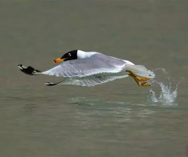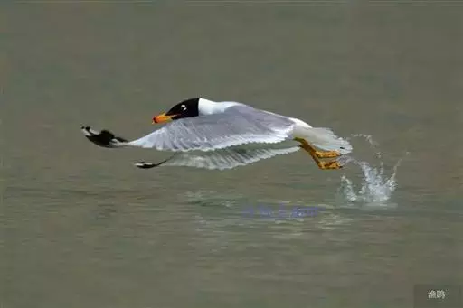 渔鸥(学名:Larus ichthyaetus)体长68厘米,是形体较大的背灰色鸥。头黑而嘴近黄,上下眼睑白色,看似巨型的红嘴鸥,但嘴厚重且色彩有异。体型与银鸥相同或略大。冬羽头白,眼周具暗斑,头顶有深色纵纹,嘴上红色大部分消失。飞行时翼下全白,仅翼尖有小块黑色并具翼镜。第一冬的鸟头白,头及上背具灰色杂斑,嘴黄而端黑,尾端黑色。栖于三角洲沙滩、内地海域及干旱平原湖泊。常在水上休息。常见于大型湖泊。繁殖地从黑海至蒙古、中国;越冬在地中海东部、红海至缅甸沿海及泰国西部。