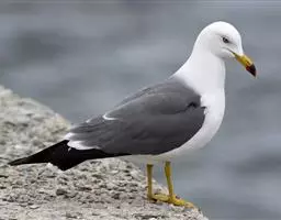 灰背鸥大型水鸟,体长62~69厘米。嘴直,黄色,下嘴先端有红色斑。脚粉红色,头、颈和下体白色,背、…