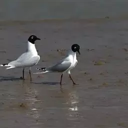黑嘴鸥 中型水鸟,体长31~39厘米。嘴黑色,脚红色。夏羽头黑色,眼上和眼 下具白色星月形斑,在黑…