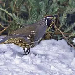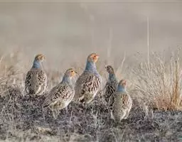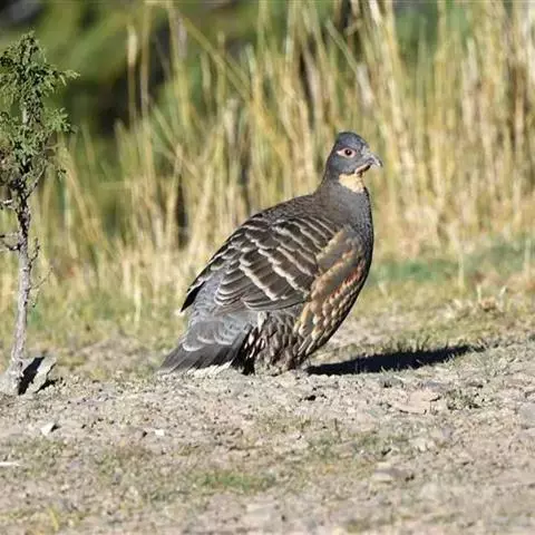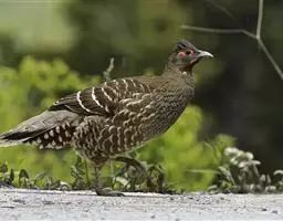 体大的灰褐色鹑类。胸灰色具黑色细纹。与相似种类四川雉鹑不同处在于栗色喉块外缘近白。有猩红色眼周裸皮。…