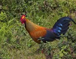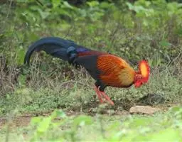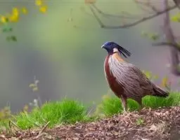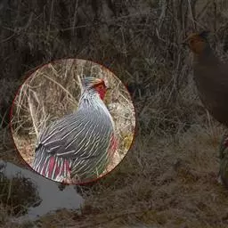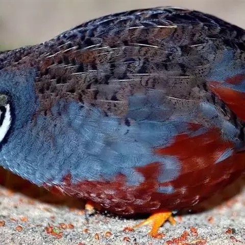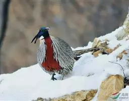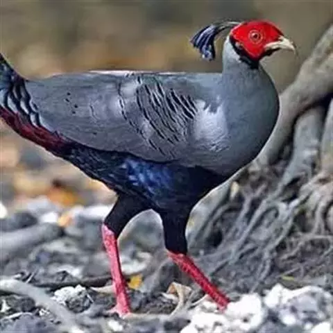 血雉雉科血雉属鸟类,别名血鸡、松花鸡,血雉的雄鸟大覆羽、尾下覆羽、尾上覆羽、脚、头侧、腊膜为红色,…