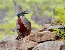 红腹角雉属于鸡形目雉科,雄鸟体羽及两翅主要为深栗红色,满布具黑缘的灰色眼状斑,下体灰斑大而色浅。雌…