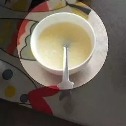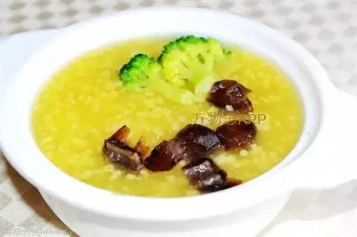 【制作】先以小米煮粥,取汁,再打入鸡蛋,稍煮。