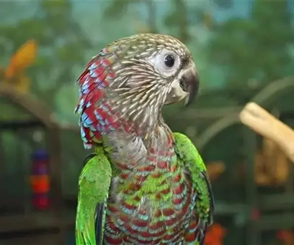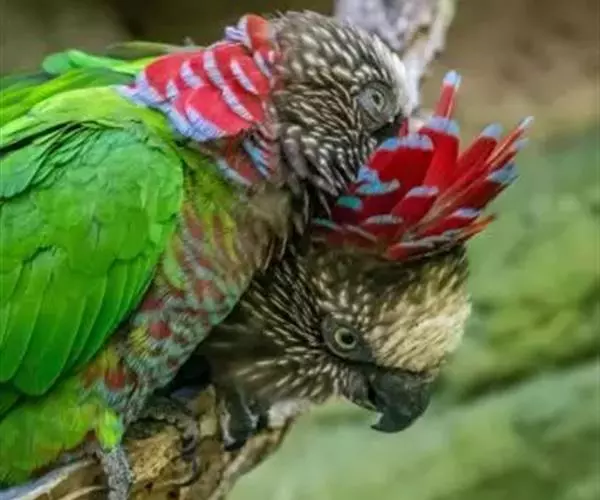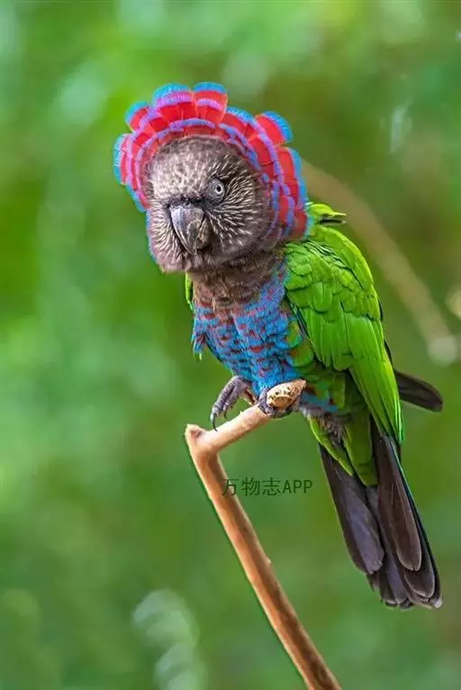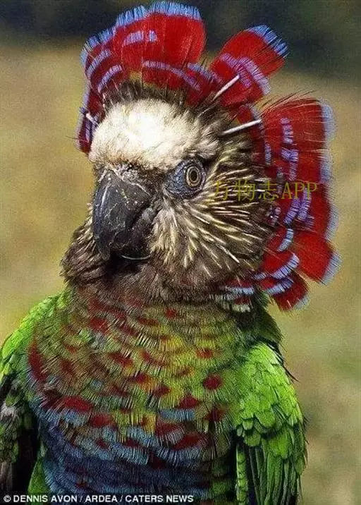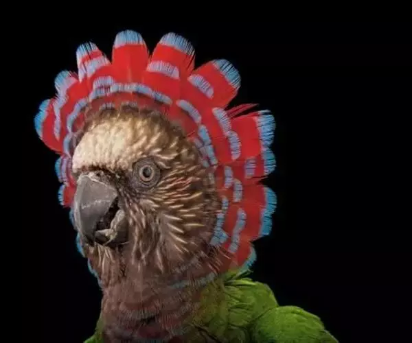是唯一会把整个颈部以上的羽冠如伞蜥蜴般扩展开的鹦鹉,看起来很像印地安人的羽冠,头部与胸腹部羽色鲜艳美丽,神情起来份外像老鹰,极为特别。