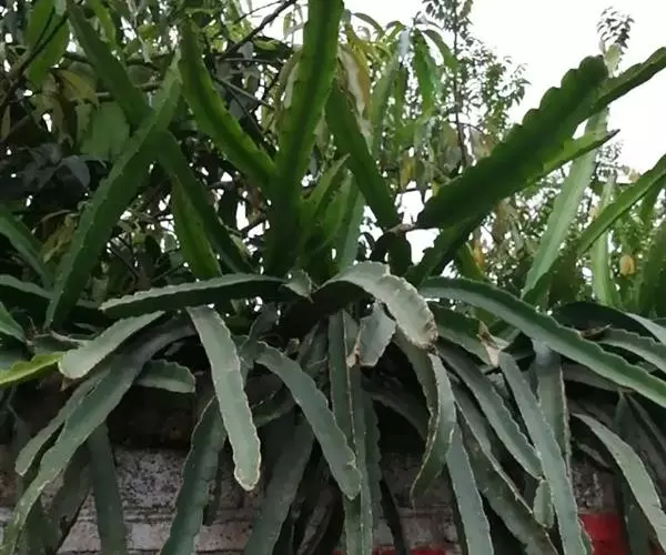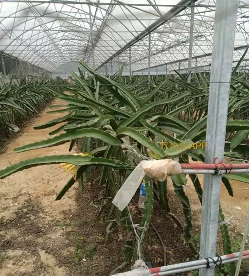 4.修剪枝条:每年采果后剪除结过果的枝条,让其重新发出新枝,以保证来年的产量。火龙果种植方式多种多样,可以爬墙种植,也可以搭棚种植,但以柱式栽培最为普遍,其优点是生产成本低、土地利用率高。