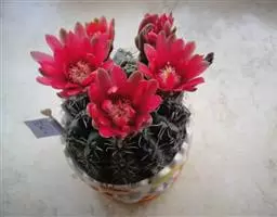 • 绯花玉 Speg.)是仙人掌科、裸萼球属多肉植物,植株呈扁球形,表皮墨绿色,刺针状,…