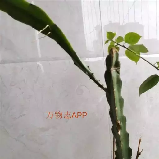火龙果为多年生攀援性的多肉植物。植株无主根,侧根大量分布在浅表土层,同时有很多气生根,可攀援生长。根茎深绿色,粗壮,长可达7米,粗10-12厘米,具3棱。棱扁,边缘波浪状,茎节处生长攀援根,可攀附其他植物上生长,肋多为3条,每段茎节凹陷处具小刺。由于长期生长于热带沙漠地区,其叶片已退化,光合作用功能由茎干承担。茎的内部是大量饱含粘稠液体的薄壁细胞,有利于在雨季吸收尽可能多的水分。