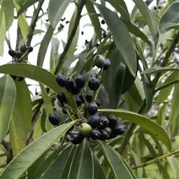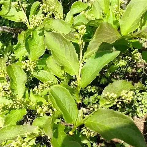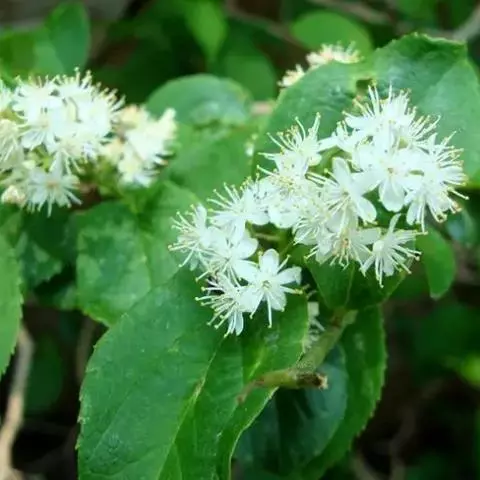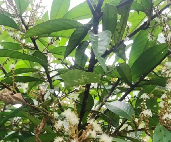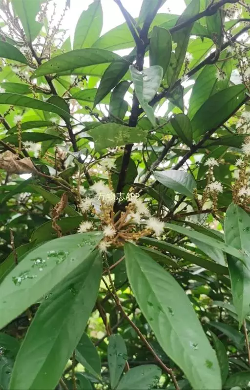 乔木,高可达13米;小枝粗壮,芽、嫩枝、叶柄、叶背中脉均被红褐色绒毛。叶纸质,椭圆形、倒卵状椭圆形或狭椭圆形,长9-27厘米,宽3-10厘米,先端急尖或渐尖,基部阔楔形或近圆形,叶背被柔毛,毛的基部有褐色腺状斑点,边缘有细锯齿或近全缘;中脉在叶面凹下,侧脉每边7-13条;叶柄长1-2厘米。穗状花序长6-11厘米,近基部3-5分枝,花序轴、苞片、萼均被红褐色绒毛;苞片卵形,长约3毫米,小苞片三角状卵形,长约2毫米,背面中肋凸起;花萼长2-3毫米,5裂,裂片卵形,与萼筒等长;花冠有芳香,白色或淡黄色,长约5毫米,5深裂几达基部;雄蕊60-80枚,花丝基部联合;花盘圆柱状,无毛;子房3室。核果圆球形,直径5-7毫米,顶端宿萼裂片合成圆锥状,基部有宿存苞片,核具5-8条浅纵棱。花期8-9月,果期10-11月。