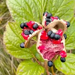 单花顶生,直径7-10厘米;萼片3-5,宽卵形,长1.2-1.5厘米,淡绿色,花瓣6,白色、红色、紫红色,倒卵形,长3-5.5厘米,宽1.8-2.8厘米;雄蕊长1-1.2厘米,花丝淡红色,花药长圆形;花盘浅杯状,包住心皮基部;心皮2-3,无毛。蓇葖卵圆形,长2-3厘米,成熟时果皮反卷呈红色。花期5-6月中旬;果期9月。