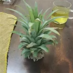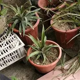 凤梨原株开花前后基部叶腋处产生多个蘖芽,待蘖芽长到10厘米左右,有3-5片叶时,用利刀在贴近母株的部位连短缩茎切下,伤口用杀菌剂消毒后稍晾干,蘸浓度为300-500毫克/千克的萘乙酸,扦插于珍珠岩、粗沙或培养土中,保持基质和空气湿润,并适当遮荫,1-2个月后即有新根长出,可转入正常管理。注意蘖芽太小时扦插不易生根,极易腐烂;太大时分株,消耗营养太多,降低繁殖系数。