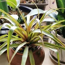凤梨根系较弱,主要起固定植株的作用,吸收功能是次要的。其生长发育所需的水分和养分,主要是贮存在叶基抱合形成的凹槽内,靠叶片基部的吸收鳞片吸收。即使根系受损或无根,只要凹槽内有一定的水分和养分,植株就能正常生长。 夏秋生长旺季1-3天向凹槽内淋水1次,每天叶面喷雾1-2次。保持凹槽内有水,叶面湿润,土壤稍干;冬季应少喷水,保持盆土潮润,叶面干燥。 凤梨对磷肥较敏感,施肥时应以氮肥和钾肥为主,氮、磷、钾比例以10:5:20为宜,浓度为0.1-0.2%,一般用0.2%尿素或硝酸钾等化学性完全肥料,生产上也可以用稀薄的矾肥水(出圃前需要清水冲洗叶丛中心),叶面喷施或施入凹槽内,生长旺季1-2周喷1次,冬季3-4周喷1次。
