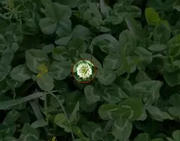 白车轴草,豆科车轴草属的多年生草本植物,茎贴地匍匐;叶柄直立,小叶心形,边缘具细齿,叶脉明显,…