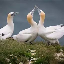 北方鲣鸟身体呈高度流线型,适于潜水捕鱼,有时从高达45米处垂直俯冲入水;时常集群取食,捕捉如鲱鱼和…