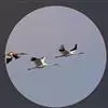 9月,幼鸟已经能够飞行一定的距离,上一年的亚成体和亲鸟及当年的幼鸟开始混群,在天气适宜时练习编队飞行,渐渐离开繁殖地。