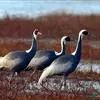 黑颈鹤:是鹤科、鹤属的大型涉禽,体长110-120厘米,体重4-6千克。颈、脚甚长,通体羽毛灰白色,…