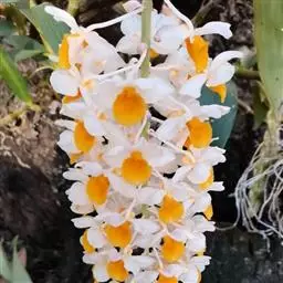 美花石斛是兰科石斛属多年生草本。茎柔弱,斜立或下垂,呈细圆柱形,有时分枝;叶互生于茎上,…