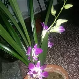 通常选用四壁多孔的塑料或陶瓷花盆,用碳根、泥炭藓、树皮块、木炭块等作盆栽材料。根据兰苗的大小,选择不同规格的花盆,但不宜用大盆栽小苗口上述栽好材料在使用前必需在清水中浸泡1天以上备用。盆底要多垫大瓦片或碎砖块,深度至盆底约1/3处,然后将兰苗放于盆中央,并在一旁插一细竹竿以固定兰苗,再填入其他栽培材料,注意根与根之间用材料隔开。