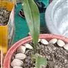 准备好兰盆及植料后,将兰株倒拿(根在上,叶在下)放于水龙头下以慢水冲洗,但水压切忌过强,以免伤兰根及叶子。用拇指和食指抓住兰头,小指抵住盆缘,用竹筷将根固定,当放入盆内时,尽量不要让根接触到盆壁。将豆粒大的混合石砾倒入盆底至三分之一处。然后倒入中粒植料至五分之四处,填实和尽量不要留下空间。将竹筷拔出,并摇实盆中植料。填实植料后,再用大粒植料埴入至距盆缘1.5厘米处。最后再倒入豆粒大植料,以将假鳞茎全部埋入土中为度,然后充分摇实。用压土工具轻压植料,并将表面弄平。种植完毕后,植料在盆中以中央稍高为好。
