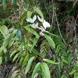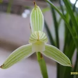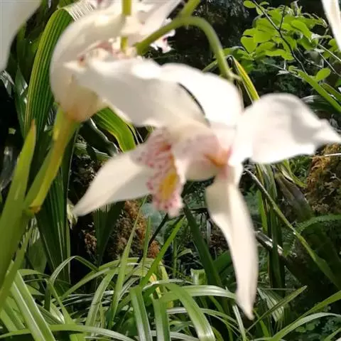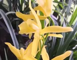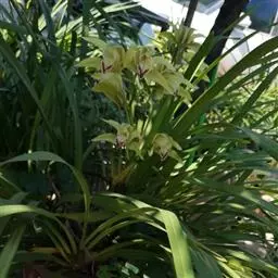 大雪兰(学名:Cymbidium mastersii Griff. ex Lindl.):附生兰。假鳞茎似茎状,包藏于宿存的叶基内。叶数枚至多枚,二列,近革质。花葶常仅1个,从下部叶腋发出,长25-45厘米;总状花序具2-5花;花直径6厘米,不完全开放,白色至淡绿色,唇瓣中裂片上具1个黄色斑块,有时还有紫红色斑点;萼片狭椭圆形或宽披针形及矩圆形;花瓣宽线形,唇瓣矩圆状卵形,与蕊柱基部合生,中裂片自中部至基部具1个密被短毛的斑块。花期10-12月。