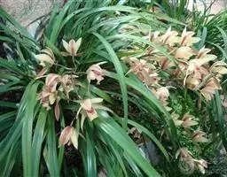 寒兰是兰科兰属的地生草本植物。茎为椭圆形;叶呈带状,尾部修长渐尖,叶脉较明显;每秆花枝开5-12朵,…