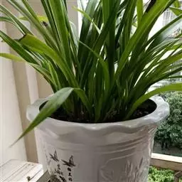 上盆(或翻盆)时间一般在春季3-4月或秋季10-11月。花盆以口小、盆深、底孔大的为佳。新从山上挖来的野生苗需理植于瓦盆(泥盆)中,这样兰花泥易干,通气性好.容易发根;2-3年后方可换人紫砂盆或瓷盆。兰花种植(在盆中)的方法与一般花卉不同,尤其是名种兰花,翻种移盆必须洗根。方法足将根浸入清水中,用旧牙刷或毛笔轻轻洗刷,切勿用力过大伤根;用剪刀将残叶、黄叶、断裂根、发黑腐烂根剪去,注意勿伤幼芽。然后将处理好的植株放在阴凉通风处晾干,待根部发白并显细小皱纹柔软时,再植入盆中。
