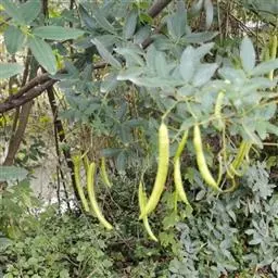 果实呈卵球形或长圆球形,长1.5-3cm,直径1.5-2cm,果柄较长。表面黄白色,较光滑。果皮膜质而脆,内有多数种子。种子肾状圆形,表面棕褐色,长约1.5mm。