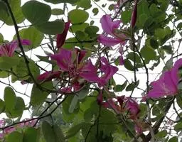 洋紫荆:落叶乔木;树皮暗褐色,近光滑;幼嫩部分常被灰色短柔毛;枝广展,硬而稍呈之字曲折,无毛。叶近…