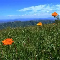 大花耧斗菜(Aquilegia glandulosa Fisch. ex Link.),属双子叶植物纲 、毛茛目、毛茛科植物,高20-40厘米,叶片轮廓三角形,苞片披针形至长圆形,花瓣瓣片蓝色或白色,近直立,圆状卵形,蓇葖长2-3厘米,顶端宿存花柱长6-7毫米。6-8月开花。喜生于海拔1900-2700米间的山地针叶林下,山坡草地或谷地河