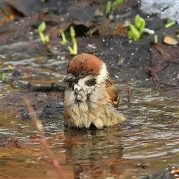 家麻雀:共有13个亚种。是小型鸟类,体长14-16厘米。背栗红色具黑色纵纹,两侧具皮黄色纵纹;颏、…
