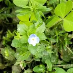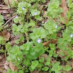 阿拉伯婆婆纳 (学名:Veronica persica Poir.)是玄参科,婆婆纳属铺散多分枝草本植物,高可达50厘米。叶片短柄,卵形或圆形,腋内生花的称苞片,边缘具钝齿,两面疏生柔毛。总状花序很长;花梗比苞片长,裂片卵状披针形,花冠蓝色、紫色或蓝紫色,雄蕊短于花冠。蒴果肾形,网脉明显,种子背面具深的横纹,3-5月开花。