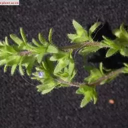 阿拉伯婆婆纳(图1) 铺散多分枝草本,高10-50厘米。茎密生两列多细胞柔毛。叶2-4对(腋内生花的称苞片,见下面),具短柄,卵形或圆形,长6-20毫米,宽5-18毫米,基部浅心形,平截或浑圆,边缘具钝齿,两面疏生柔毛。