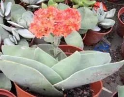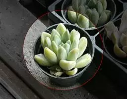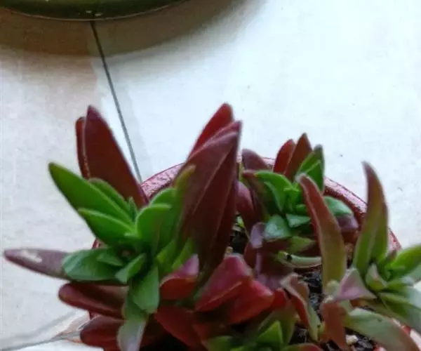 多肉植物,植株丛生,长圆形肉质叶交互对生,排列紧密,使植株呈四棱状,叶面有毛点,在光 照充足的条件下肉质叶呈浅绿色至深红色,特别是秋末至春季,由于此时昼夜温差较大且阳光充足,叶色更为鲜艳。聚伞花序,小花黄白色。
