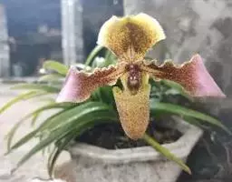 麻栗坡兜兰兰科,兜兰属地生或半附生植物。叶基生;数枚至多枚,叶片带形、革质。花葶从叶丛中长出,…
