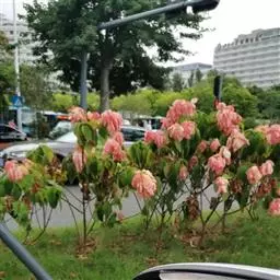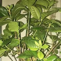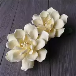 栀子花,花朵簇状约30枚瓣,奶油色,中心黄色;花径12cm;气味果香.