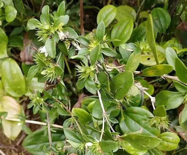 小灌木,通常高达1米;枝粗壮,灰色,被短毛,后毛脱落变无毛,嫩枝被微柔毛。叶通常丛生,薄纸质,倒卵形或倒披针形,长1.5-4厘米,宽0.7-1.3厘米,顶端短尖或近短尖,基部收狭成一短柄,除下面被疏毛外,其余无毛;侧脉每边2-3条,上举,在叶片两面均凸起,小脉疏散不明显;托叶具锥形裂片,长2毫米,基部阔,膜质,被疏毛。花无梗,生于小枝顶部,有苞片;苞片膜质,斜方状椭圆形,长渐尖,长约6毫米,具疏散小缘毛;花托无毛;萼檐裂片5,坚挺延伸呈披针状锥形,极尖锐,长4毫米,具缘毛;花冠管长4毫米,外面无毛,喉部被毛,裂片5,长圆状披针形,长2.5毫米;花药内藏,长1.3毫米;花柱柔弱,长约7毫米,2裂,裂片长1.5毫米。花期4-6月。