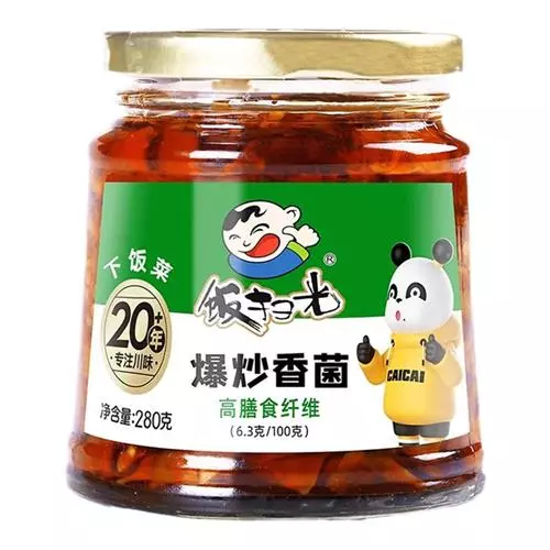 饭扫光即“饭扫光”开胃菜系列,是深受人们喜爱的特色川味食品,由四川高福记食品有限公司于2001年1月推出,现有野竹笋,野香菌,野蕨菜,爆炒金针菇,爽脆木耳等7种口味。