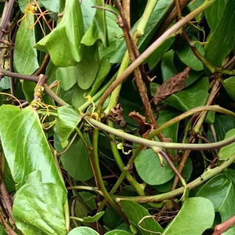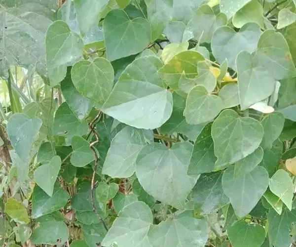 木质藤本,长达10余米或更长,小枝通常被灰黄色绒毛,有条纹,常长而下垂,老枝无毛。叶纸质至薄革质,三角状卵形至三角状近圆形,很少卵状椭圆形,长3.5 -8厘米,很少超过10厘米,顶端钝或圆,很少短尖,有小凸尖,基部近截平至心形,很少阔楔尖,边缘有圆齿或近全缘,两面被绒毛或上面被疏柔毛至近无毛,很少两面近无毛;掌状脉5条,很少3条,网状小脉稍明显;叶柄长3-7厘米,被绒毛,通常生叶片基部,极少稍盾状着生。聚伞花序伞房状,长2 -10厘米,被绒毛;雄花
