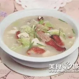 3. 锅内放入蘑菇片,调味后续煮3分钟,即可起锅温食。