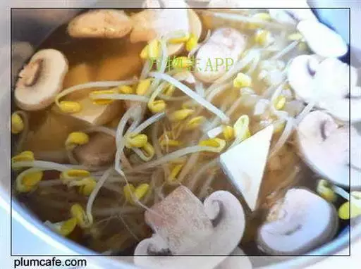 主料:黄豆芽100克,蘑菇(鲜蘑、草菇)100克